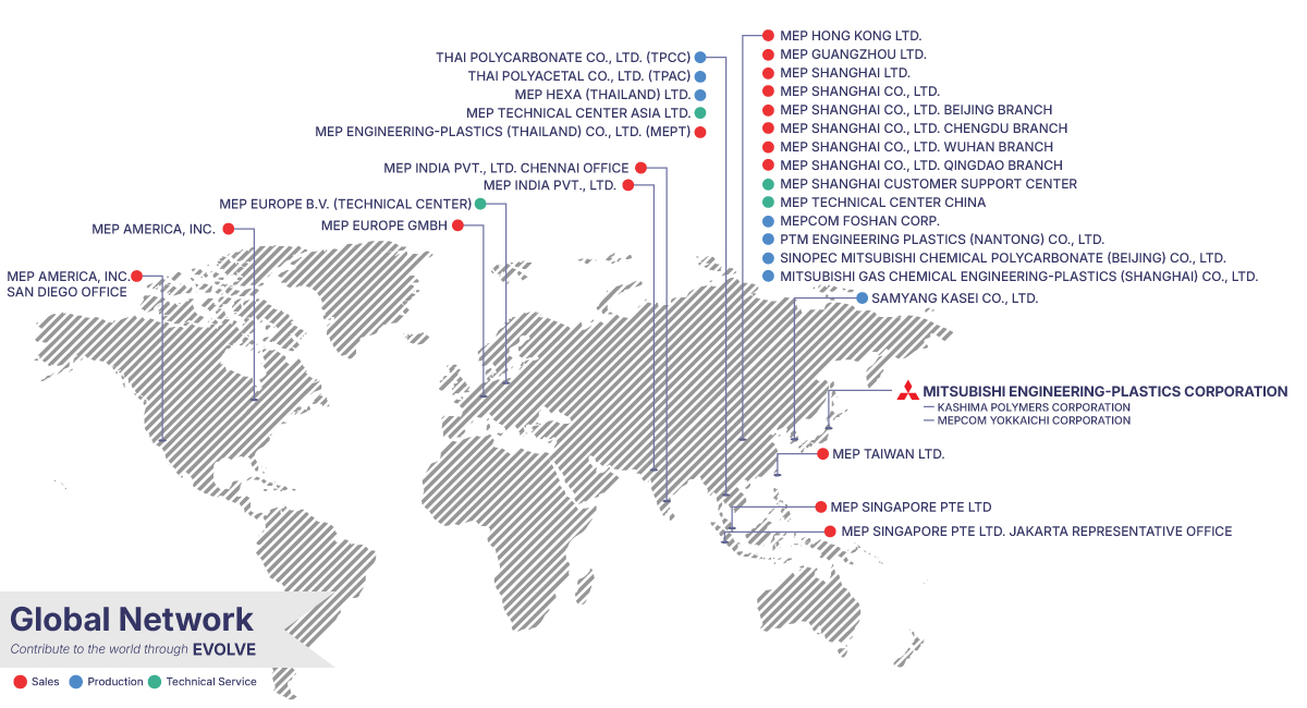 The establishment of MEPT will help combine sale channels of PC and POM resins with MEP’s other resins’ business like PA, Reny™ and mPPE. Furthermore, it will make better use of existing support facilities of customer service and technologies of MEP-Technical Center. |